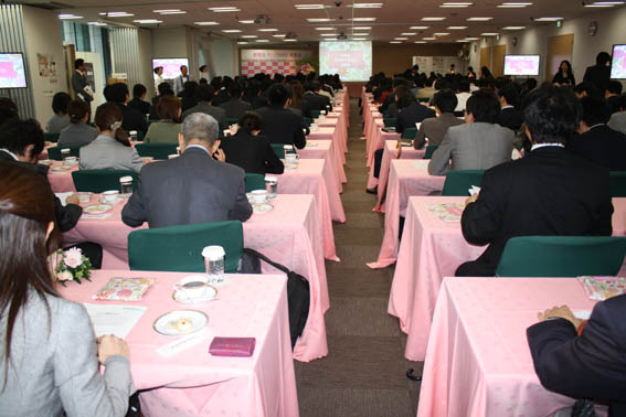 RBA HOME> RBAタイムズHOME >2011年 > 「ピンク」一色 住林の新商品「mamato (ママト) 」発表会 テーマは「ママも家族もハッピーになれる」 記者発表会場(経団連会館で) |