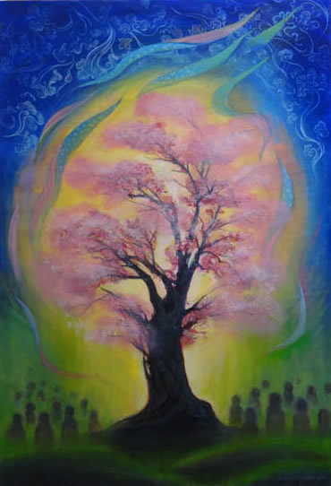 RBA HOME> RBAタイムズHOME >2013年 > 「閖上に希望と勇気を」 中国人画家・常嘉煌氏が100号絵画「祈願の櫻」寄贈 「祈願の櫻」 (100号、油彩) |